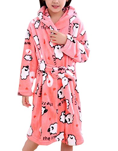 雲の花 子供用フード付きローブガールズパジャマフラットホームウエアバスローブ (S, 羊)