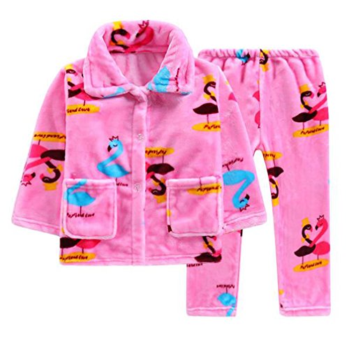 雲の花 子供ピンクガールフランネルかわいいロングスリーブパジャマセット (白鳥, 130cm)