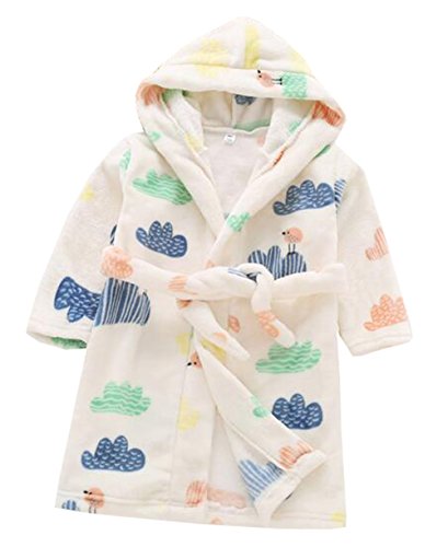 雲の花 子供のバスローブのフランネルのガールパジャマの男の子のバスローブ (ホワイト, 100cm)