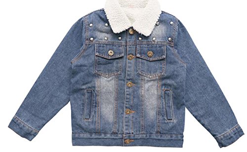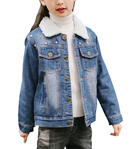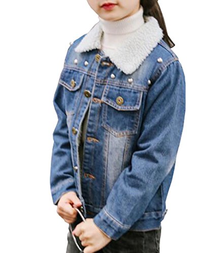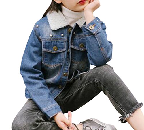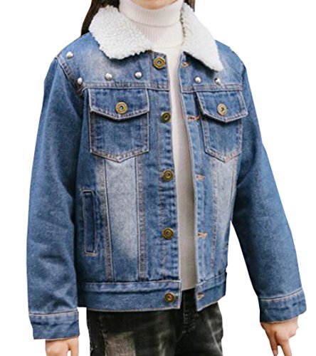 雲の花 青い子供のリベットデニム子羊のウールの女の子アウターウェアコート (150cm)