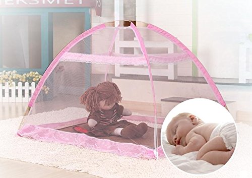 快適 ! 【 ベビー 蚊帳 80×110×80cm 収納ケース 付き 】 ワンタッチ 折りたたみ 虫よけネット 赤ちゃん プリンセスレース モスキートネット ベッド カーテン インテリア (ピンク)