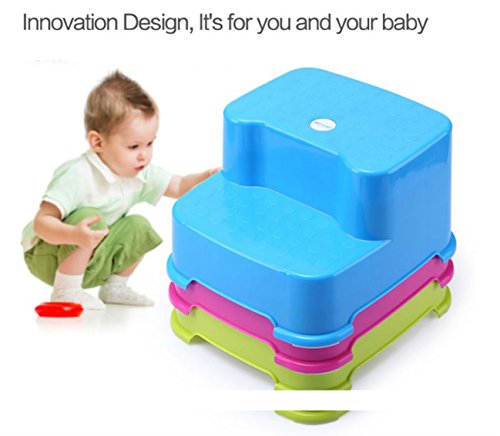 HANBUN 踏み台 子供 キッズ用 子供のスツール 厚い プラスチック スツール 踏み台 ステップ 2段 HM005 (BLUE)
