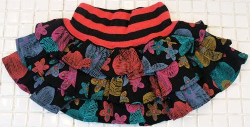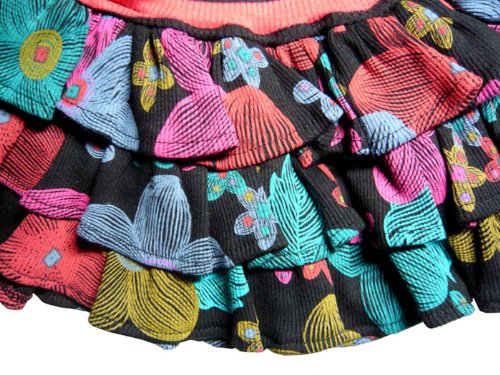 【韓国子供服】【110cm】花柄 3段 フリル ティアード ミニスカート(ブラック)/BISKET (110(120))