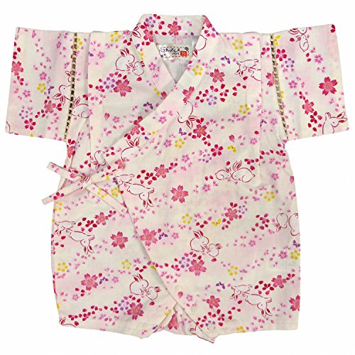 甚平 ロンパース ベビー ウサギ柄 女の子 じんべい 日本製生地 ホワイト 70