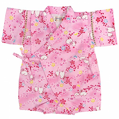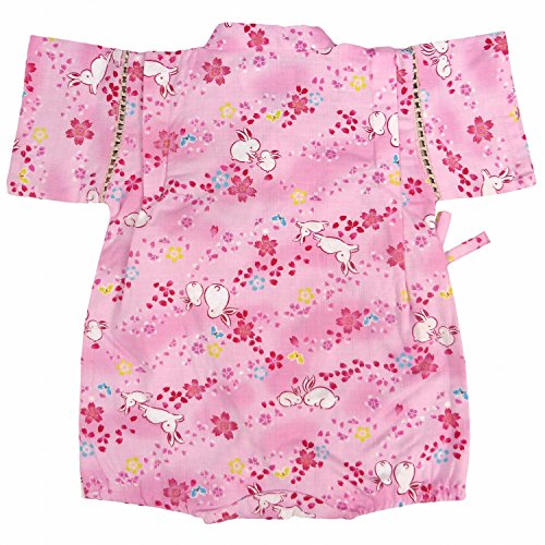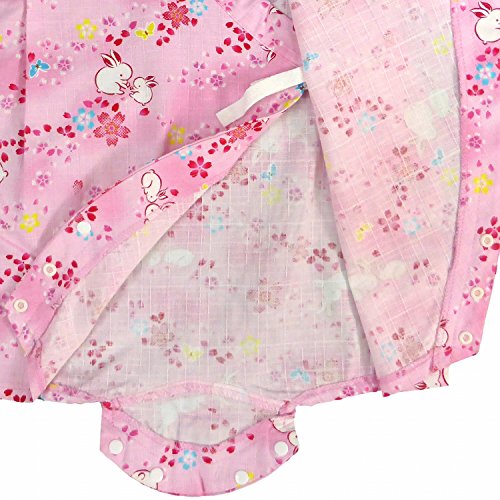 甚平 ロンパース ベビー ウサギ柄 女の子 じんべい 日本製生地 ピンク 70