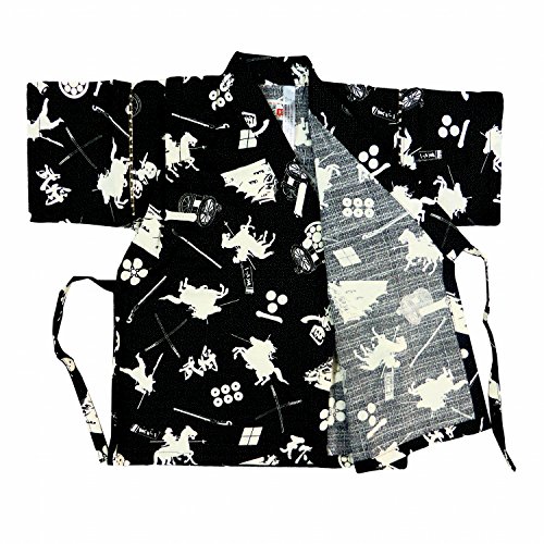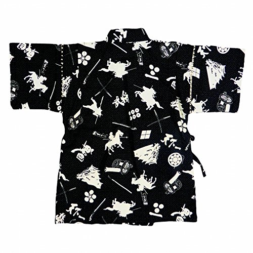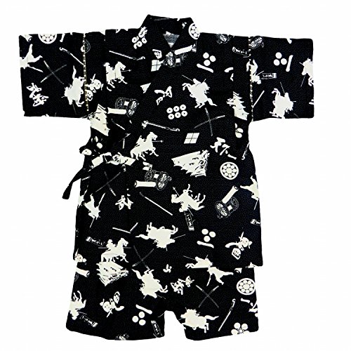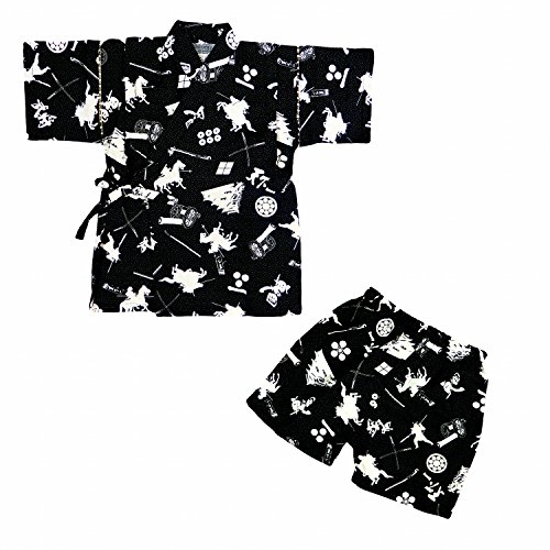甚平 ベビー 男の子 戦国柄 上下セット じんべい じんべえ ブラック 80