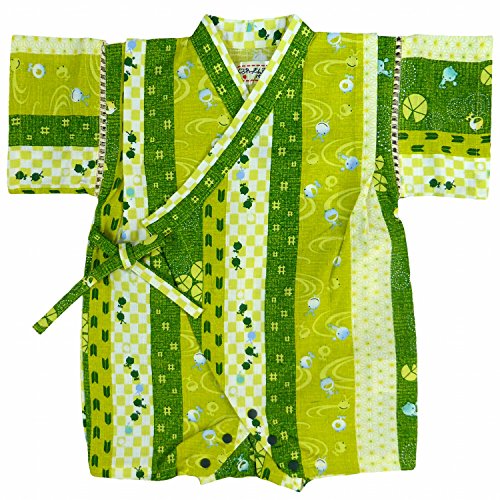 甚平 ロンパース ベビー 男の子 じんべい カエル柄 日本製生地 グリーン 80