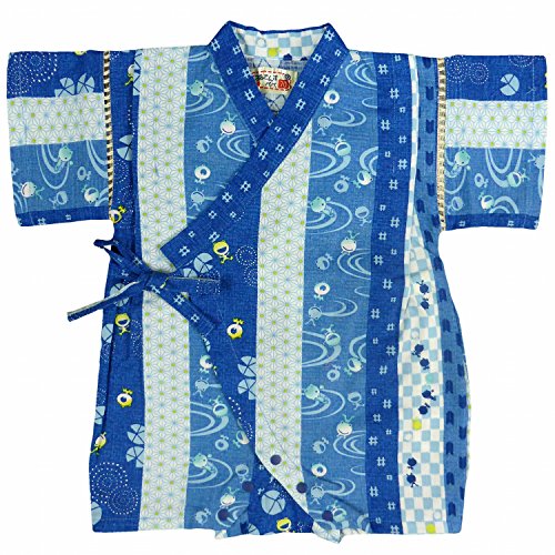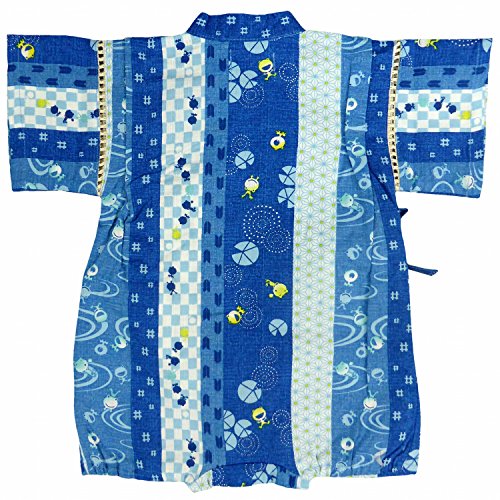 甚平 ロンパース ベビー 男の子 じんべい カエル柄 日本製生地 ブルー 80