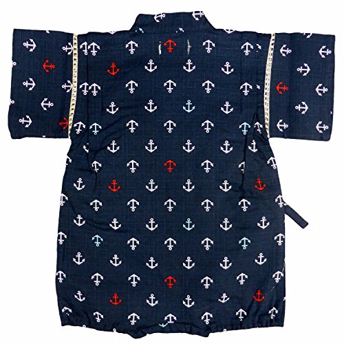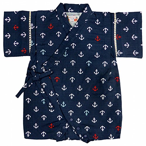 甚平 ロンパース ベビー 男の子 じんべい マリン柄 日本製生地 ネイビー 80