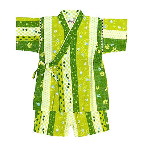 甚平 ベビー 男の子 カエル柄 上下セット じんべい じんべえ グリーン 90