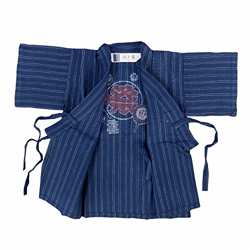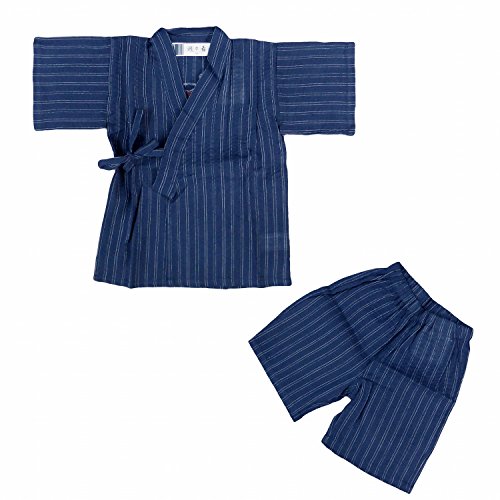 甚平 じんべい 男の子 ベビー しじら織り じんべえ 上下セット ネイビー-白線 95