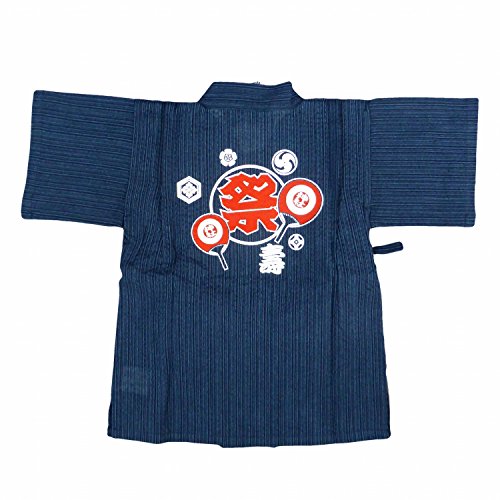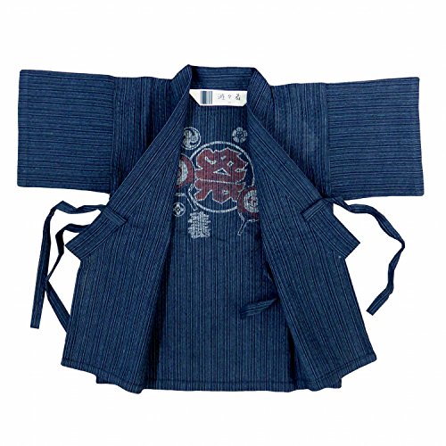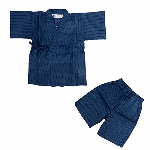 甚平 じんべい 男の子 ベビー しじら織り じんべえ 上下セット ネイビー-黒線 90