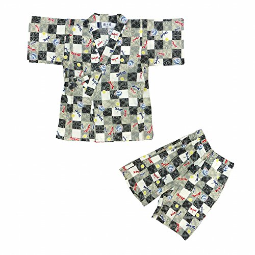 甚平 じんべい 男の子 ベビー トンボ柄 じんべえ 上下セット グレー 80