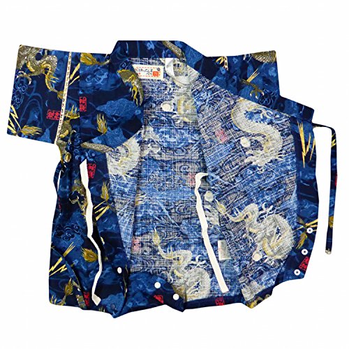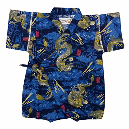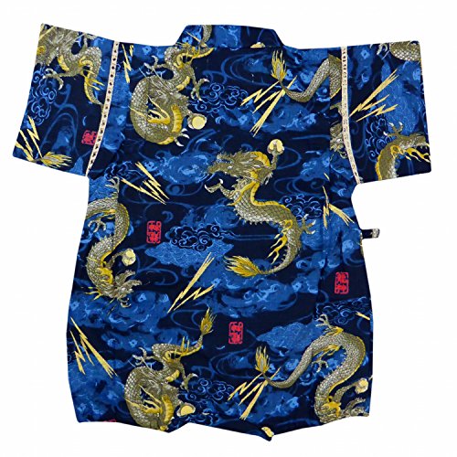 甚平 ロンパース ベビー 男の子 じんべい 龍柄 日本製生地 ネイビー 70