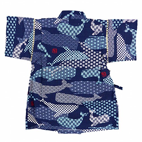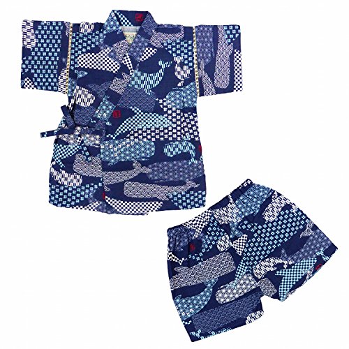 甚平 ベビー 男の子 くじら柄 上下セット じんべい じんべえ ネイビー 95