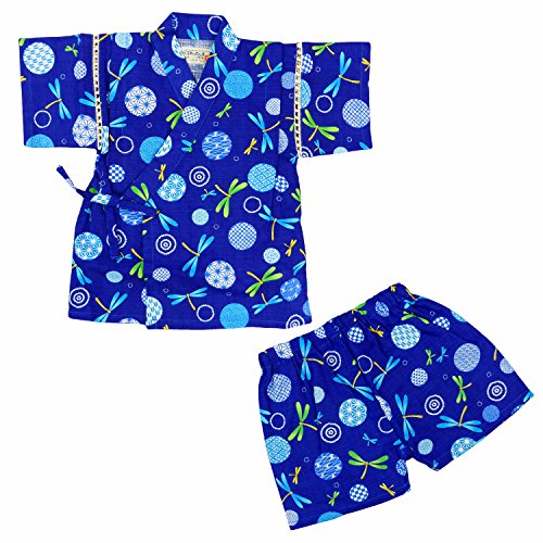 甚平 ベビー 男の子 トンボ柄 上下セット じんべい じんべえ ネイビー 80