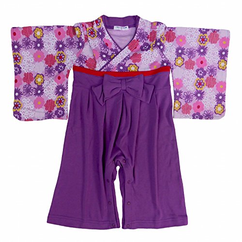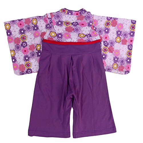 袴ロンパース ベビー 女の子 和柄 カバーオール 花柄 ロンパス パープル 80