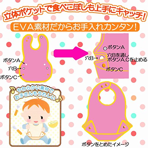 下部がスナップボタン留めで立体になり食べこぼしをキャッチするポケットになります