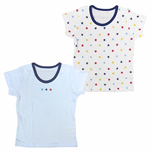 シャツ 肌着 2枚組 ベビー 男の子 半袖 インナー 星柄 サックス-ホワイト 80