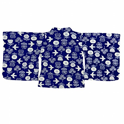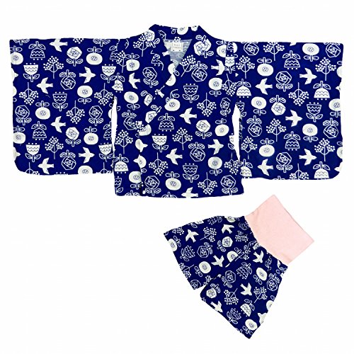 パジャマ 女の子 ベビー 浴衣風 寝間着 ルームウェア 鳥花柄 ネイビー 95