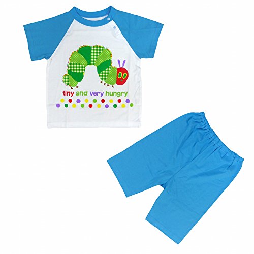 半袖パジャマ はらぺこあおむし 子供 パジャマ 寝間着 ホワイト-ブルー 100
