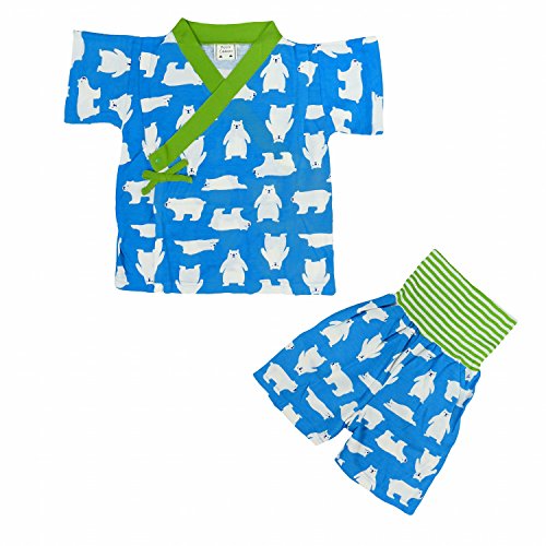 パジャマ 男の子 ベビー 甚平風 寝間着 ルームウェア シロクマ柄 ターコイズ 90