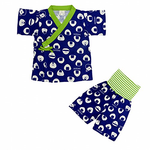 パジャマ 男の子 ベビー 甚平風 寝間着 ルームウェア おにぎり柄 ネイビー 95
