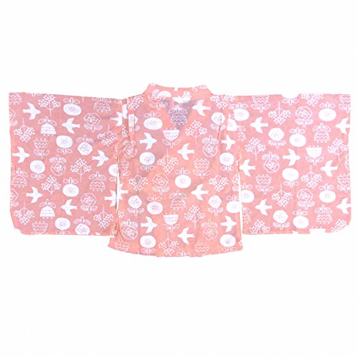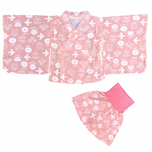 パジャマ 女の子 ベビー 浴衣風 寝間着 ルームウェア 鳥花柄 ピンク 80