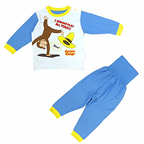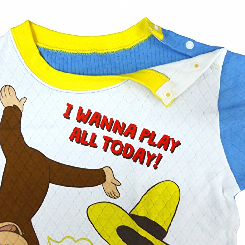 長袖パジャマ おさるのジョージ 腹巻付 寝間着 ニットキルト ホワイト-サックス 80