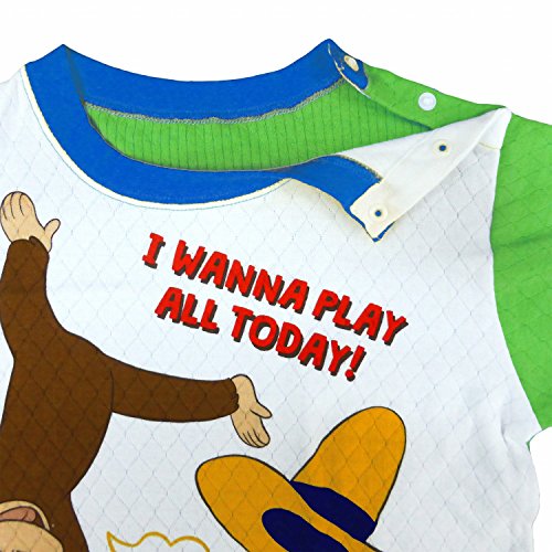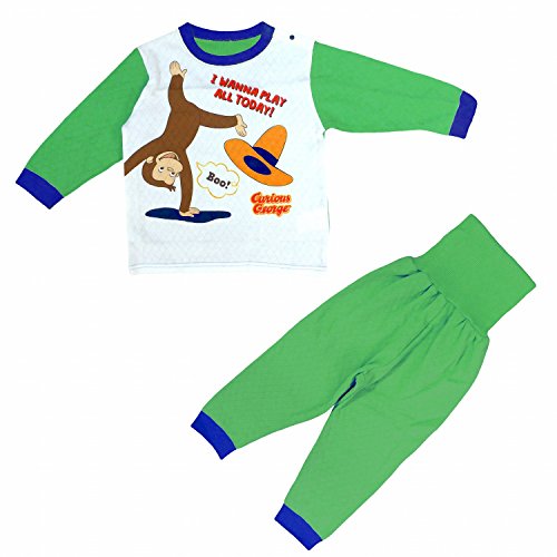 長袖パジャマ おさるのジョージ 腹巻付 寝間着 ニットキルト ホワイト-グリーン 95