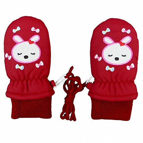 ミトン ベビー 女の子 手袋 グローブ 撥水 裏ボア ひも付 レッド 3-4才