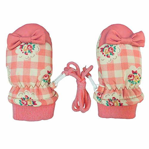 ミトン ベビー 女の子 グローブ 手袋 裏ボア ひも付 チェック柄 オレンジピンク 1-2才
