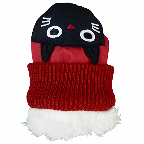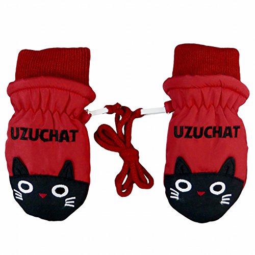 ミトン ベビー 女の子 グローブ 手袋 裏ボア ひも付 ネコ レッド 3-4才
