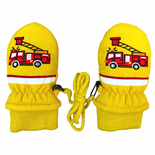 ミトン 男の子 ベビー 手袋 グローブ 撥水 裏ボア ひも付 イエロー-消防車 3-4才
