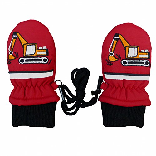 ミトン 男の子 ベビー 手袋 グローブ 撥水 裏ボア ひも付 レッド-ショベルカー 3-4才