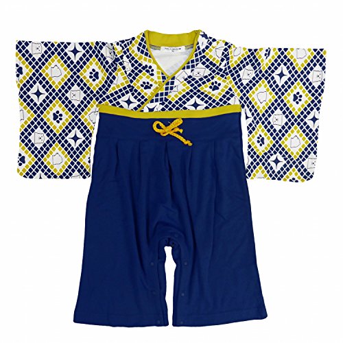 袴ロンパース ベビー 男の子 和柄 カバーオール くま ロンパス ネイビー 90