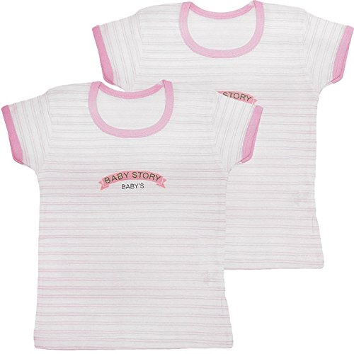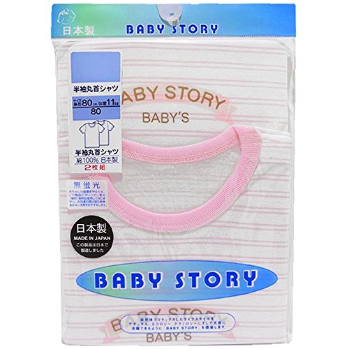 ベビー 半袖丸首シャツ 日本製 2枚組 ボーダー柄 ピンク 90