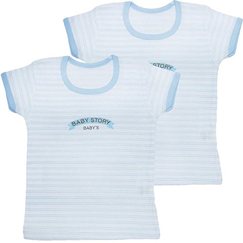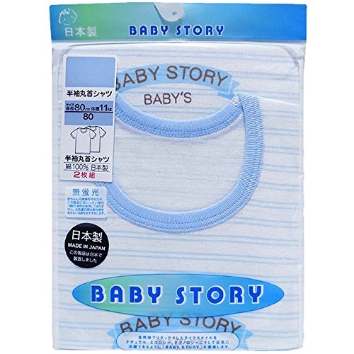 ベビー 半袖丸首シャツ 日本製 2枚組 ボーダー柄 サックス 90