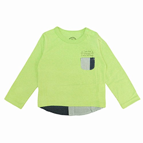長袖Tシャツ ベビー 男の子 フェイクレイヤード 肩ボタン付 トップス グリーン 95