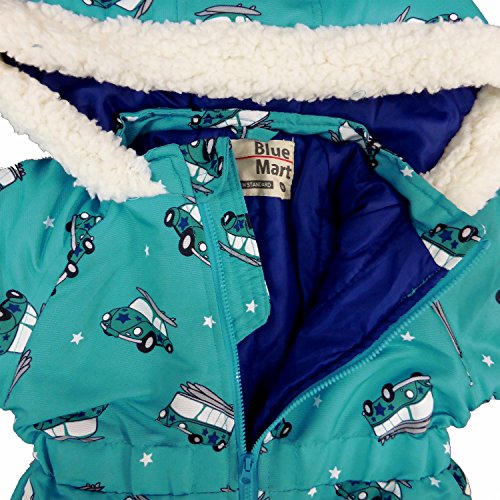 ジャンプスーツ 中綿 ベビー ボアフード スノーコンビ ターコイズ 80