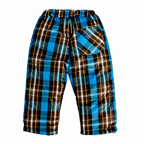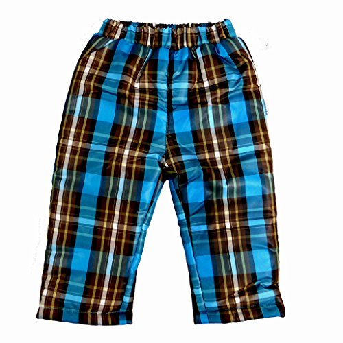 スノーパンツ ベビー 男の子 チェック柄 中綿入り パンツ 防寒 ズボン ターコイズ-ブラウン 90