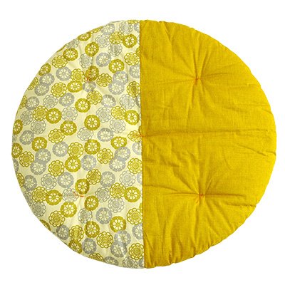 洛中高岡屋 せんべい座布団 直径1mのひだまりクッション フローラルグリーン×菜の花色