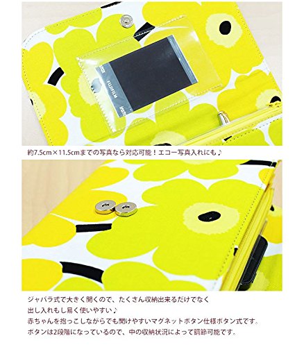 北欧で大人気のテキスタイルブランド、marimekko(マリメッコ)のUNIKKO(ウニッコ)生地とRasymatto(ラシィマット)生地、artek(アルテック)のSIENA(シエナ)生地とH55生地を使用した、とってもおしゃれでかわいいジャバラタイプの母子手帳ケースが鶴三工房から登場です。 安心の日本製(国内縫製)です。日本国内では入手が困難なカラーもあり、在庫限りの限定販売となっております。 大きく開いてとっても便利で、ペンホルダーや小銭を入れれるファスナーポケット、カードポケット等収納力も抜群です。 蓋を開けると写真ポケット(約7.5cmx11.5cmまで対応)があり、エコー写真入れとしても使用できます。 赤ちゃんを抱っこしながらでも開けやすいマグネットボタン仕様で、ボタンは2段階になっており中の収納状況によって調節可能です。 8か所のカード入れにペンホルダーも×3、マチがたっぷりで開閉位置も調整できるのでたくさん入れても大丈夫! パスポートなどなどマルチケースとしてもお使いいただけます!