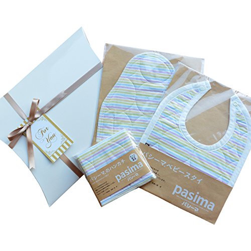 赤ちゃんが舐めても安心の無添加素材出産祝いに喜ばれるパシーマベビー3点セット!脱脂綿とガーゼの安心素材でつくられたパシーマなら、デリケートな赤ちゃんの肌にぴったり。ザブザブ洗えるパシーマは洗濯するほど独特の風合いを増し、ソフトな肌ざわりに変わります。有害物質を含まず、ホコリも出にくいので、赤ちゃんに優しい安心素材です。デリケートは肌にもうれしいソフトな肌触りに、赤ちゃんも思わずにっこり!出産祝いにも喜ばれるギフトセットです。