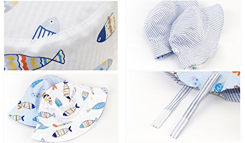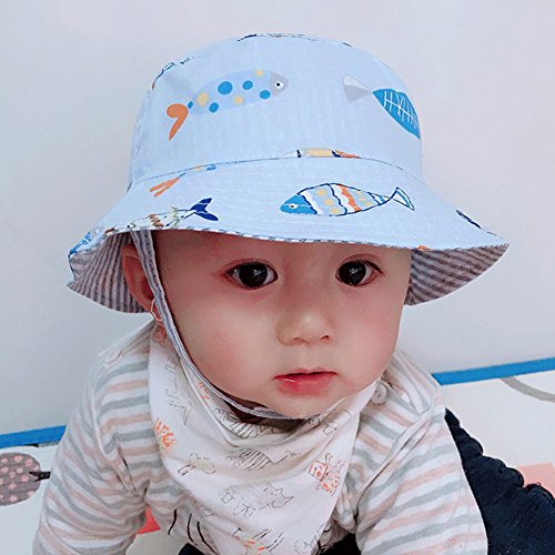 (アダ二ナ)Adanina 帽子 キッズ 日よけ帽子 uv かわいい ベビー 幼児用 バケットハット 男の子 女の子兼用 コットン素材 魚花柄 サファリハット あご紐付き 保育園 幼稚園 お出かけ アウトドア