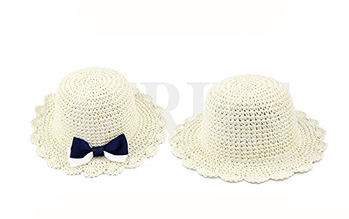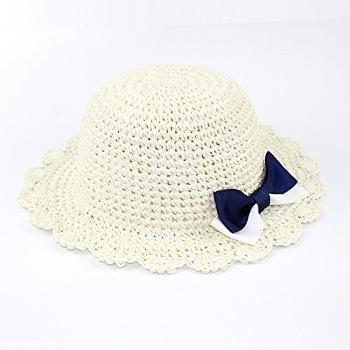 (アダ二ナ)Adanina 子供用ハット 手作り帽子 可愛い リボン 蝶結び 麦わら帽子 ストローハット ビーチハット 子供 キッズ 女の子 ガールズ用 つば広 日よけ UVカット 紫外線対策 ホワイト