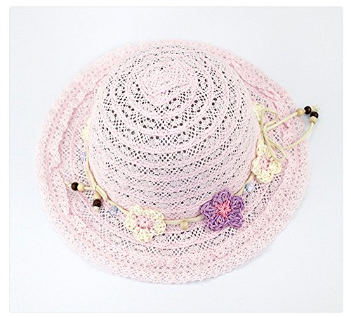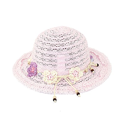 (アダ二ナ)Adanina ベビー用ハット 夏帽子 可愛い 蝶結び 麦わら帽子 子供用ハット キッズ 帽子 レース ペーパーハットサンバイザー子供 つば広帽 ボーラーハットアウトドア お出かけに 紫外線 日よけ帽子 ガールズ