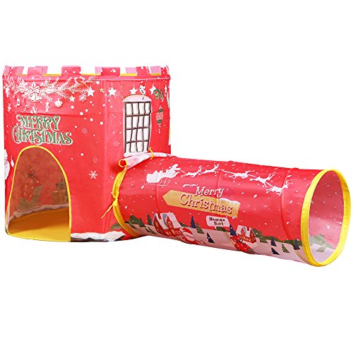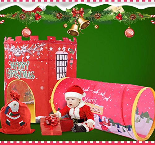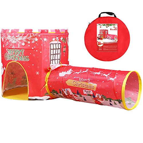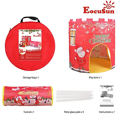 (イークスン) EocuSun 子供キッズテント セット ゲームハウス 知育玩具 折り畳み式 収納バッグ付き (2in1 レッド)