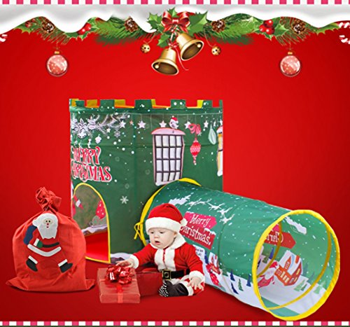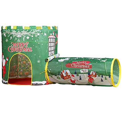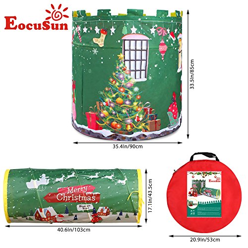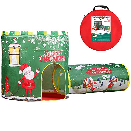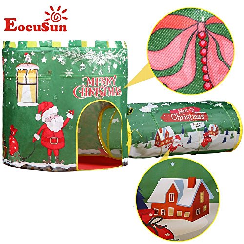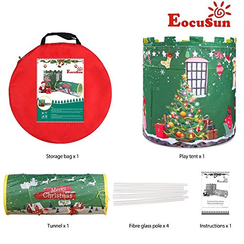 (イークスン) EocuSun 子供用テント セット 折り畳み式 トンネル 幼児用 子供部屋 欧米風 収納バッグ付き 2in1 (グリーン)