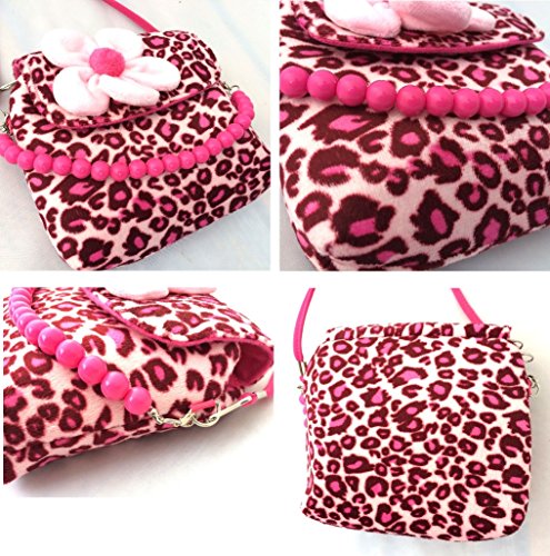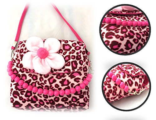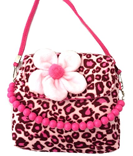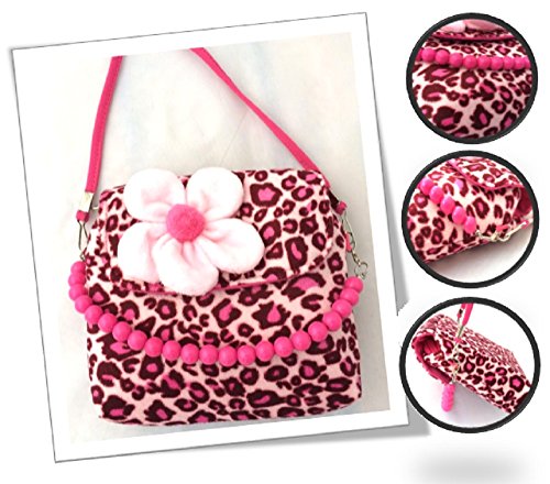 (K-JOY) 女の子 キッズ用 花柄 ハンドバッグ ショルダー バック 斜めがけ / 子供用 カバン 鞄 (花 ピンク 豹柄)